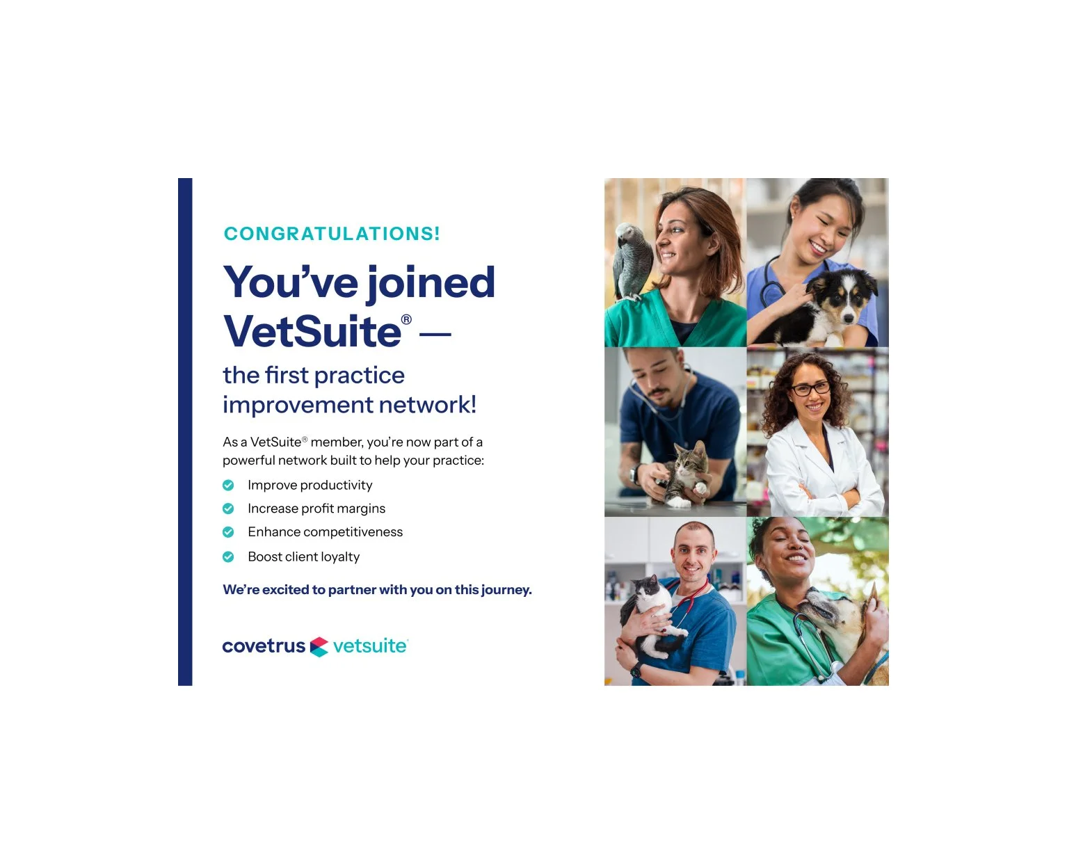 The VetSuite welcome kit was a physical onboarding package for new practices joining the platform. The goal was to create a cohesive, welcoming first-touch experience that introduced key offerings and guided next steps without overwhelming the reader.